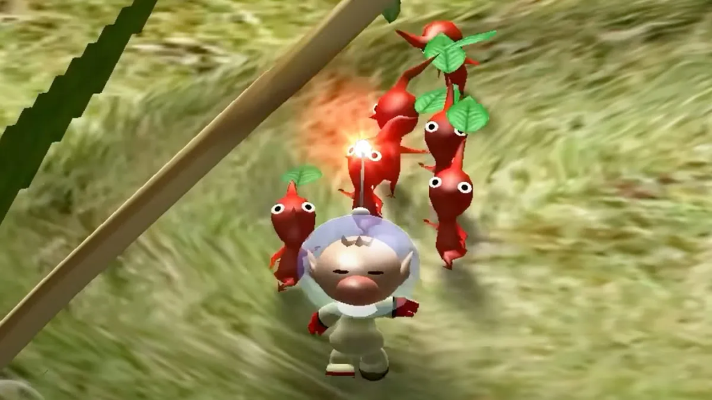 El Pikmin original salió para la Gamecube hace ya la friolera de 24 años (en 2001), que se dice pronto. Y nos presentaba un juego en el que tenemos que ayudar al Capitán Olimar a recuperar las piezas de su nave, dañada en una colisión contra un meteorito. Varado en un mundo, que recuerda vagamente a un jardín terrícola, tendremos que recorrer 5 niveles buscando las piezas y defendiéndonos de la fauna local.
