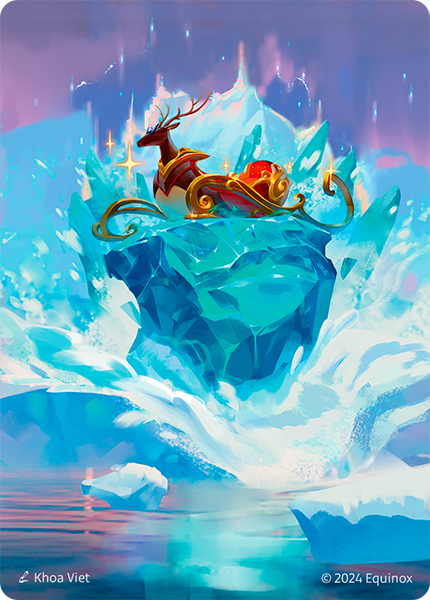Vamos con la expansión en curso, que ya está bien de vender el juego. Narrativamente, nuestros exploradores han finalizado su primer paso de expansión, y ahora toca dirigirse hacia Cais Adarra, una cordillera nevada con una extraña luz azulada que emana del centro de la montaña principal. Para reflejar este ascenso nevado, todas las cartas de la colección representan temáticamente ideas como la montaña, el alpinismo, la navidad, el frio y cosas así. Jugar con las cartas de La Prueba del Hielo es tener la sensación de estar realizando dicho ascenso y enfrentarte a los peligros y criaturas que pueblan la tundra helada.