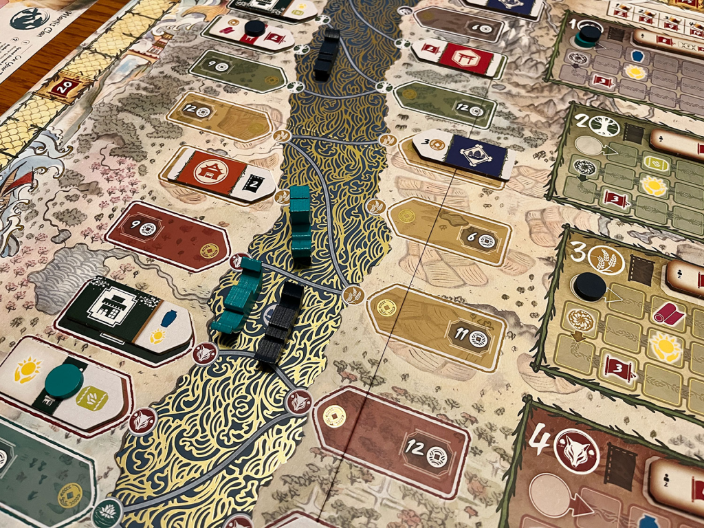 A su favor cuenta con que se trata de un título extremadamente ágil. La decisión de dejar tirado el dado al final de tu turno, hace que puedas pensar la estrategia de cara a la siguiente ronda mientras los demás juegan. Y aunque como todos compartimos el mismo río, hay algo de interacción, que el jugador anterior te pise la idea no genera un atasco y la partida va fluida en todo momento. De hecho, a veces, casi se pueden hacer cortas y te quedas con las ganas de haber jugado un par de turnos más para completar esas jugadas que tenías en la cabeza.