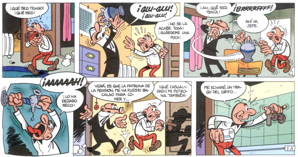 El caso del balacao cierra este maravilloso recopilatorio con la que para mi quizás, sea la historia más redonda de todo el tomo. La genialidad detrás de un plan maestro para forzar a la ciudad a pagar el agua a precio de oro, cortando el suministro de la misma después de tener a todo el mundo sediento por haber regalado bacalao hasta con el periódico… Aquí no solo hablamos de un talento para el humor desmesurado. El buen hacer de Ibañez también es ejemplar a la hora de reflejar la cultura y sociedad de nuestro país en la época. Quizás, a la larga, hacerse tan dependiente a reflejar los cambios sociales del país acabaría pasando factura. Pero en este momento es oro puro en sus manos.