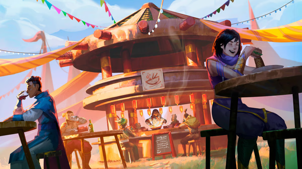 La prohibición temporal de expediciones a la Ciudad de los Eruditos obligó a los Bravos a buscar otra forma de mantenerse ocupados. Fiel a la tradición de Haven, la Facción decidió establecer un centro de acogida para las fuerzas de exploración: una cantina abierta a todos. Centradas en una cocina principal dirigida por la dirección culinaria de Hestia, las brigadas Bravos asumieron el reto de elaborar las comidas más deliciosas y sustanciosas, con concursos de cocina diarios donde chefs y ayudantes de cocina compiten para crear los menús más apetitosos. Cada día, en este comedor al aire libre, repleto de puestos de comida, los exploradores hacen cola para ver los platos del día antes de sentarse en una de las numerosas mesas al aire libre. Abierto desde el amanecer hasta bien entrada la noche, el Comedor se enorgullece de estar siempre abastecido, incluso para quienes sufren hambre a deshoras. Afortunadamente, los Bravos pueden contar con la producción constante de la Granja Muna para satisfacer la alta demanda. Como suele ocurrir con los Bravos, el Comedor se ha convertido rápidamente en el corazón del enclave, un centro animado donde la gente se reúne, se intercambian historias y circula información vital.