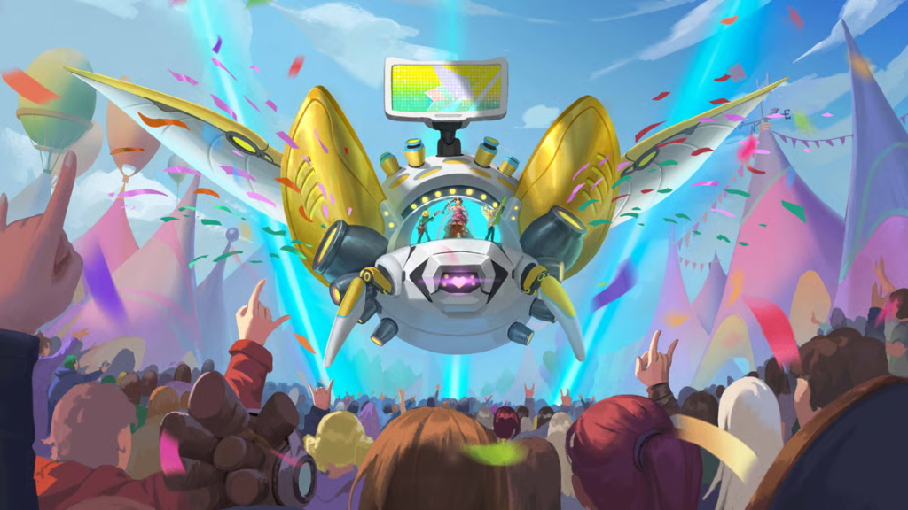 Los Lyra han asumido una misión de gran importancia, porque, en su opinión, no basta con alimentar el cuerpo; también hay que nutrir el espíritu. Tras meses de penurias, la moral del Cuerpo Expedicionario estaba por los suelos, y estaban decididos a solucionarlo. Para ello, la Facción instaló un escenario móvil diseñado para albergar todo tipo de representaciones: teatro, sketches de altavista, espectáculos unipersonales y, por supuesto, conciertos. El Escenario, con la forma de un escarabajo volador con alas vibrantes, es el centro del entretenimiento, equipado con todo lo que Axiom podía ofrecer: pantallas gigantes, focos, luces de neón deslumbrantes e incluso equipo pirotécnico. Como una carroza de desfile, el Escenario puede planear sobre los tejados para cambiar de ubicación, con su silueta insectoide flotando por el puesto avanzado, a veces para fastidio de quienes intentan dormir. Tras las apariciones de los acróbatas de Kasirga y las esculturas de hielo de Jack Frost, las próximas actuaciones incluyen a Nyala, Auraq y la reconocida banda BLISS.