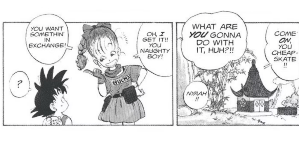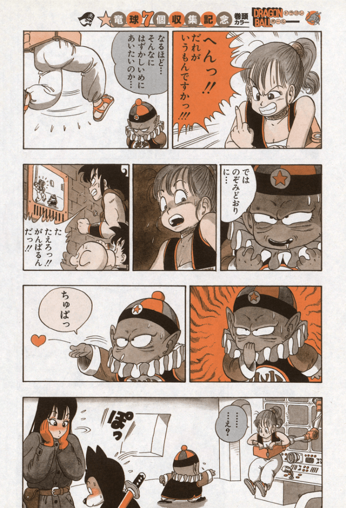Es verdad, que estamos hablando de material de 1984. Y que quizás, si en 2025 no lo habéis leído aún, o sólo conocéis la etapa de Dragon Ball Z, el coche con esta etapa, mucho más centrada en la aventura y el humor (humor completamente obsoleto, mejor que lo tengáis claro cuanto antes, aunque probablemente por nostalgia, a mi se me haya escapado algún jajá con alguna cosita moralmente incorrecta o directamente denunciable en nuestros tiempos). Lo que en su momento eran personajes «verdes» o guarros, a día de hoy tendrían probablemente pena de cárcel. Y el tratamiento del personaje de Bulma, menor y casquivana, a buen seguro le habría costado un disgusto a Toriyama en la actualidad. Pero por desactualizada la obra no deja de ser igual de buena.