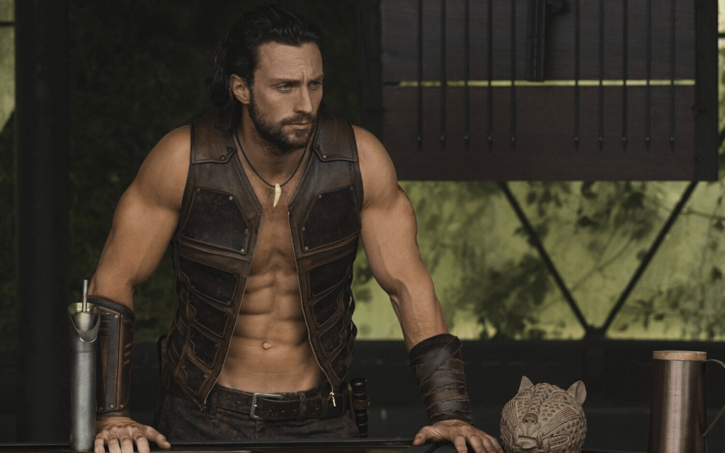 Que no olvidemos, que el protagonista de Kraven, es aquel tirillas que recibía palos hasta en el cielo de la boca en Kick-Ass. Hay que reconocer que el muchacho, con la edad, se ha puesto muuuuuu guapo. Que se ha puesto, muuuuu hermoso. Y que ahora mismo le puedes aparcar un twingo con las puertas abiertas en esa espalda que se le ha quedao. Y no es baladí. Porque para mi sorpresa, la película ha resultado un producto, no sólo muy entretenido, si no con algunas cosas muy bien rematadas. Entre ellas el trabajo físico de Aaron.
