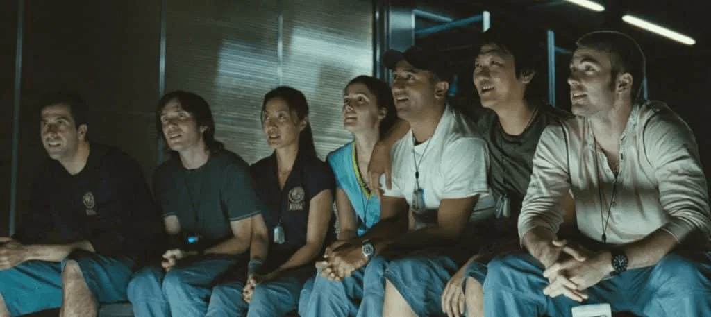 La película hace muchísimo con muy poco. El reparto, que no es estelar, aunque muy solvente, nos deja unas interpretaciones magistrales. Y aunque la película tiene alguno de esos momentos de «yo creo que esto que vais a hacer no es buena idea»; en todo momento comprendes por qué cada uno de los presentes en la nave hace lo que hace en todo momento. Respetas sus decisiones aún cuando no empatices con todos ellos. Y tenemos que hablar de la nave, porque es la otra gran protagonista de la obra.