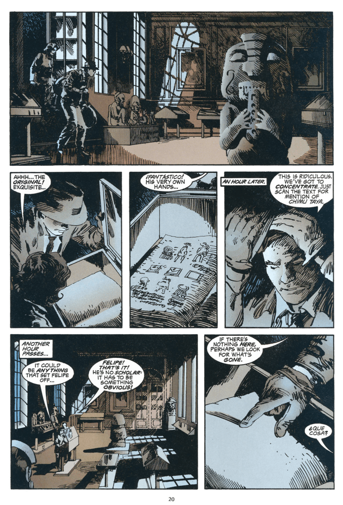 En la tercera aventura nos vamos a sudamérica en busca de Chimu Taya, una figura de oro que da nombre a la aventura (El brazo de oro). Es quizás la más floja de las tres, pero de nuevo, es más Indiana Jones; así que la coges y te la bebes con fruición igualmente. Además, mientras que Fate of Atlantis y Thunder in the Orient son secuelas a La Última Cruzada; en el caso de El brazo de oro volvemos a 1937 entre la primera y tercera películas. Me centro más en todos estos datos anecdóticos, porque a fin de cuentas, las tres historias, tanto a nivel de guión como de dibujo son bastante normalitas. Y creo que su aportación a la franquicia tienen más relevancia en tanto en cuanto son nuevas aventuras que porque sean realmente historias que dejen poso o huella.