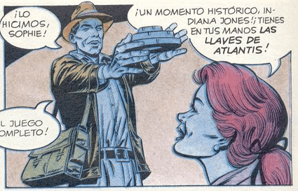 Si, efectivamente. La famosa «cuarta película nunca rodada», Indiana Jones and the Fate of Atlantis (nosotros como somos así de maravillosos cambiamos el destino por las llaves que vendrán a ser lo mismo; o quizás por que Atlantis está bajo el mar y en el fondo de ese mismo mar están las llaves, matarile rile rile…). Este primer Omnibus recopila, de forma escueta, sin ningún tipo de extra, ni recopilación de portadas (de lo mejor de las series, pues imitaban el estilo de Drew Struzan) tres aventuras diferentes. La primera de ellas es la adaptación a cómic del famoso videojuego de LucasArts.