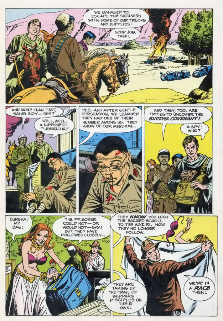 La Alianza de Buda no es una de ellas, ¿verdad Indy? En este caso, se trata de un documento sagrado, escrito por el mismo Buda, que tendría un enorme poder, pero político. Quien posea este documento, podría unir a las miles de diferentes sectas o cultos budistas que pueban toda Asia y unificarlas bajo una misma bandera. La historia resulta interesante porque volvemos a Asia después de Indiana Jones y el Templo Maldito (de ahí que las similitudes de Khamal con Tapón sean todavía mayores) donde de nuevo la recorreremos a salto mata de episodio en episodio al mas puro estilo de las películas gymkhama que son las cintas del arqueólogo.